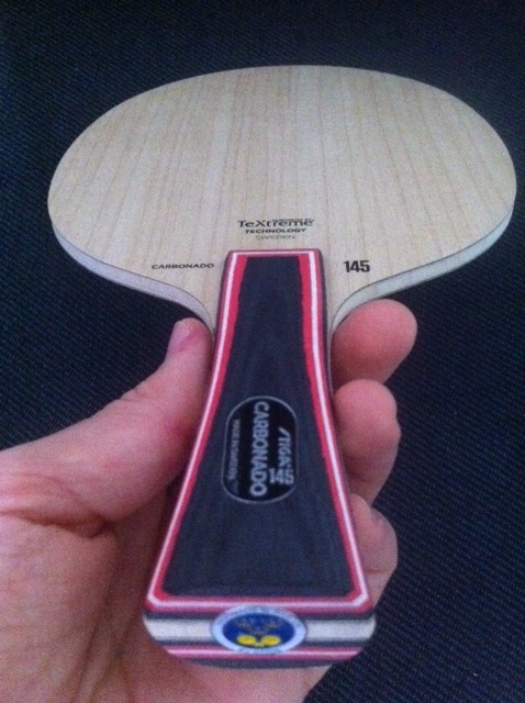 카보나도 145 블레이드는 45도 방향으로 카본층을 배열하였으며 판 전체가 뒤틀리는 특성을 사용하였습니다. (190 블레이드는 판의 꺾임이나 휨 효과를 사용합니다.) 그 결과 블레이드는 더 유연하게 느껴지며 너 높은 융통성을 줍니다. 그러나 여전히 카본 블레이드가 가지고 있는 단단함은 유지하고 있습니다. 공이 날아가는 포물선 자체가 190블레이드에 비해 더욱 높기 때문에 빠른 스피드와 더불어 정확한 송구점을 염두에 두고 플레이하는 컨트롤 위주의 전형들에게 적합합니다.