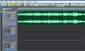 왼쪽은 멀티트랙이고 오른쪽은 싱글트랙입니다. 왼쪽은 녹음을 하는것이다 오른쪽은 곡을 편집하거나 기능을 넣는 것입니다. 우선 녹음을 시작해봅시다.ㅎㅎ 마이크가 있으셔야 합니다(헤드셋 마이크 가능) 멀티트랙에서 위에 메뉴중 insert->wave from file에서 mr을 불러옵니다(1번트랙)