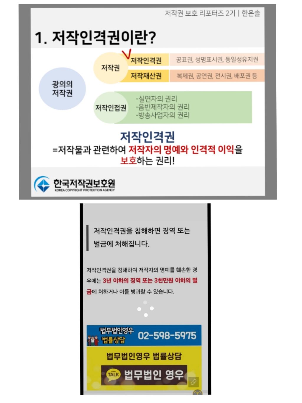 5/기존 저작물을 이용하는 과정에서 두 번째 권리인 재산권및 저작자의 명예를 훼손하는 방식이나 정신적 피해를 주면서 원작품을 이용했을 경우에는 1년까지의 실형이나1000만 원까지의 벌금형이라는 점도 밝혀 드립니다