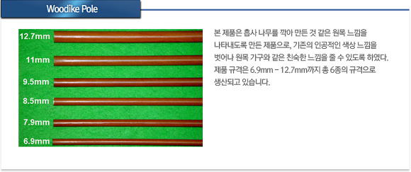 실험에 사용된 11mm 나무색 FRP 폴대는 유엔씨폴주식회사의 제품입니다.