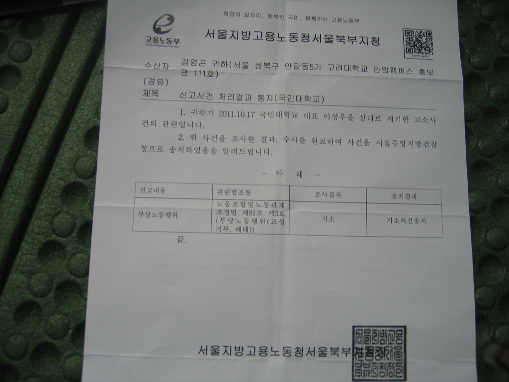 국민대 이성우 전총장 검찰 송치 작성자김영곤|작성시간12.07.17|조회수60 목록 댓글 0 글자크기 작게가 글자크기 크게가 2011년 임단협 교섭 거부, 노동조합법 상 부당노동행위 기소 의견으로. 다음검색 현재 게시글 추가 기능 열기 북마크 공유하기 신고 센터로 신고 댓글 댓글 0 댓글쓰기 댓글 리스트