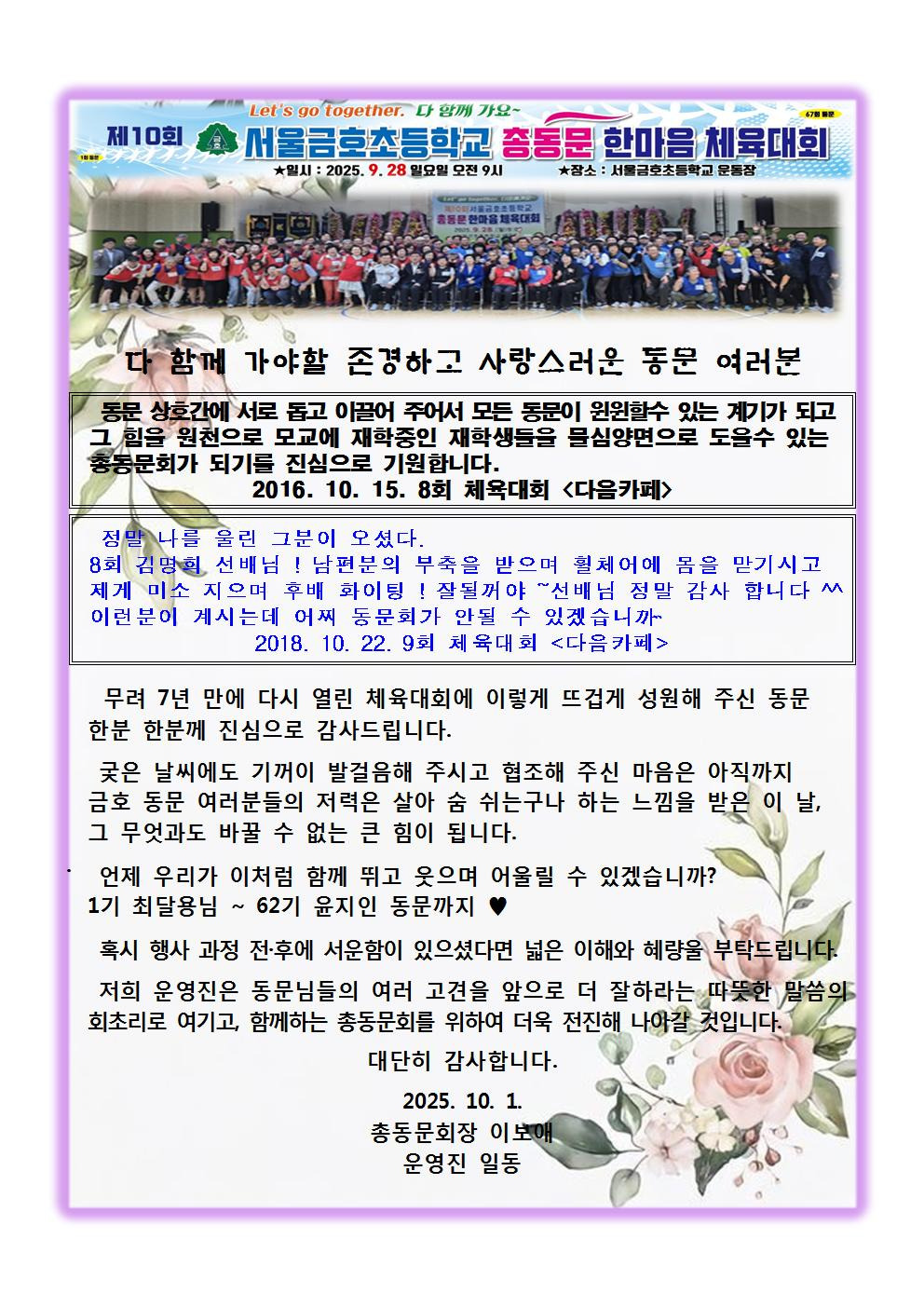 체육대회 결산 작성자강용사|작성시간25.10.01|조회수70 목록 댓글 0 글자크기 작게가 글자크기 크게가 다음검색 현재 게시글 추가 기능 열기 북마크 공유하기 신고 센터로 신고 댓글 댓글 0 댓글쓰기 답글쓰기 댓글 리스트