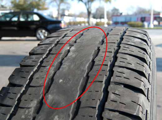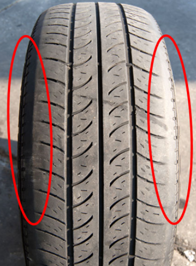 원인 : 적정 공기압이 아닐 시, 과하중 상태 주행, 타이어 위치교환 시기를 준수하지 않은 경우, 휠 얼라이먼트 이상,
