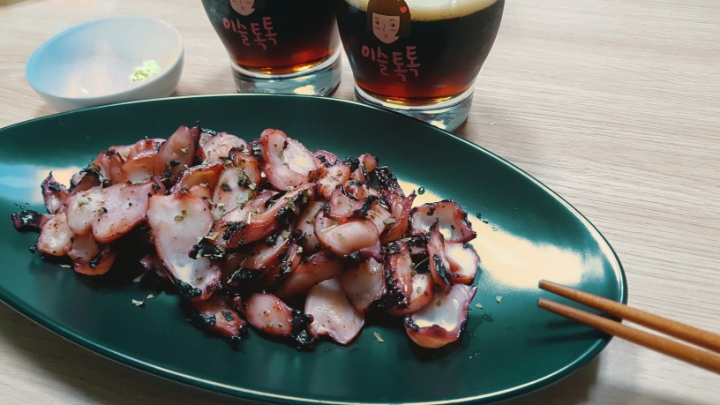 집에와서 간단히 대왕오징어다리에 맥주한캔하고 늦잠자서 지각할뻔하고..