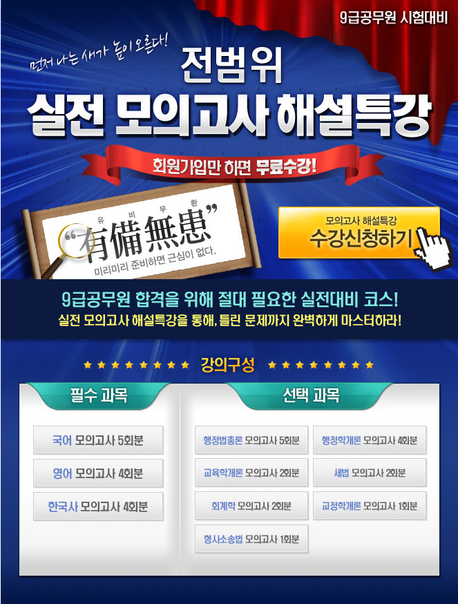9급공무원시험학원 전범위 실전 모의고사 해설특강 역시 무료로 제공중입니다.