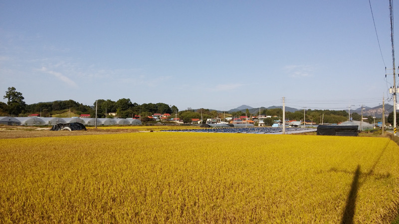 황금 물결에 이웃 어르신의 환한 얼굴 어느 곳에도 두지지 않을 맑은 공기