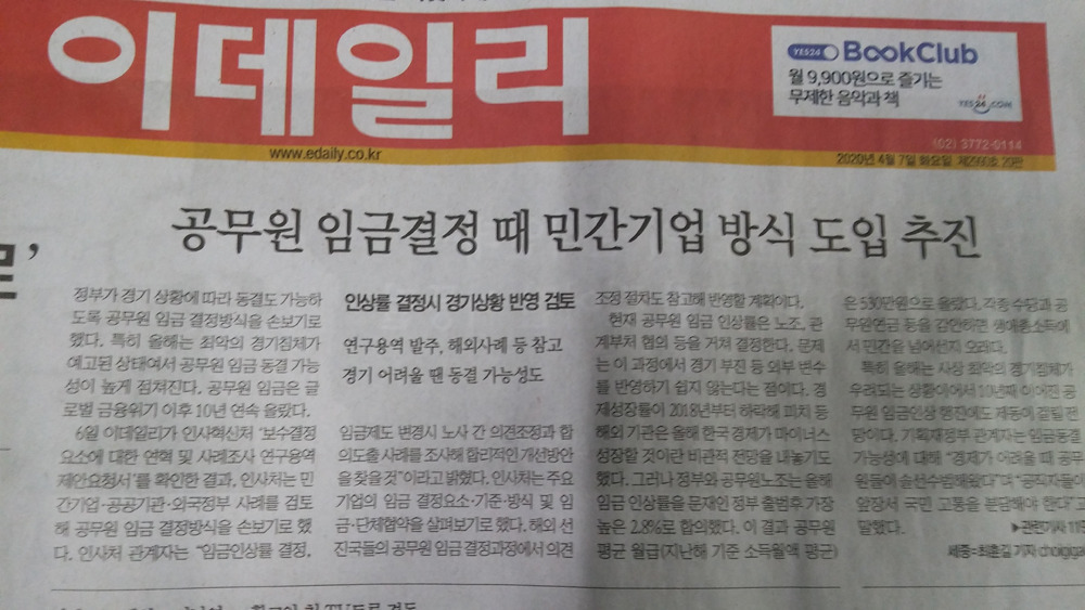 "민간기업, 공공기관, 외국정부 사례를 검토 공무원 임금 결정방식을 손보기로,