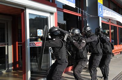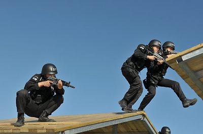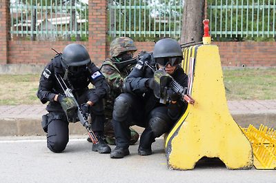 <공군 헌병 특임대... 자세히 보니 방탄헬멧 역시 국군 2점씩 신형 헬멧을 검게 칠한 것임.. 참고로 저 쪽은