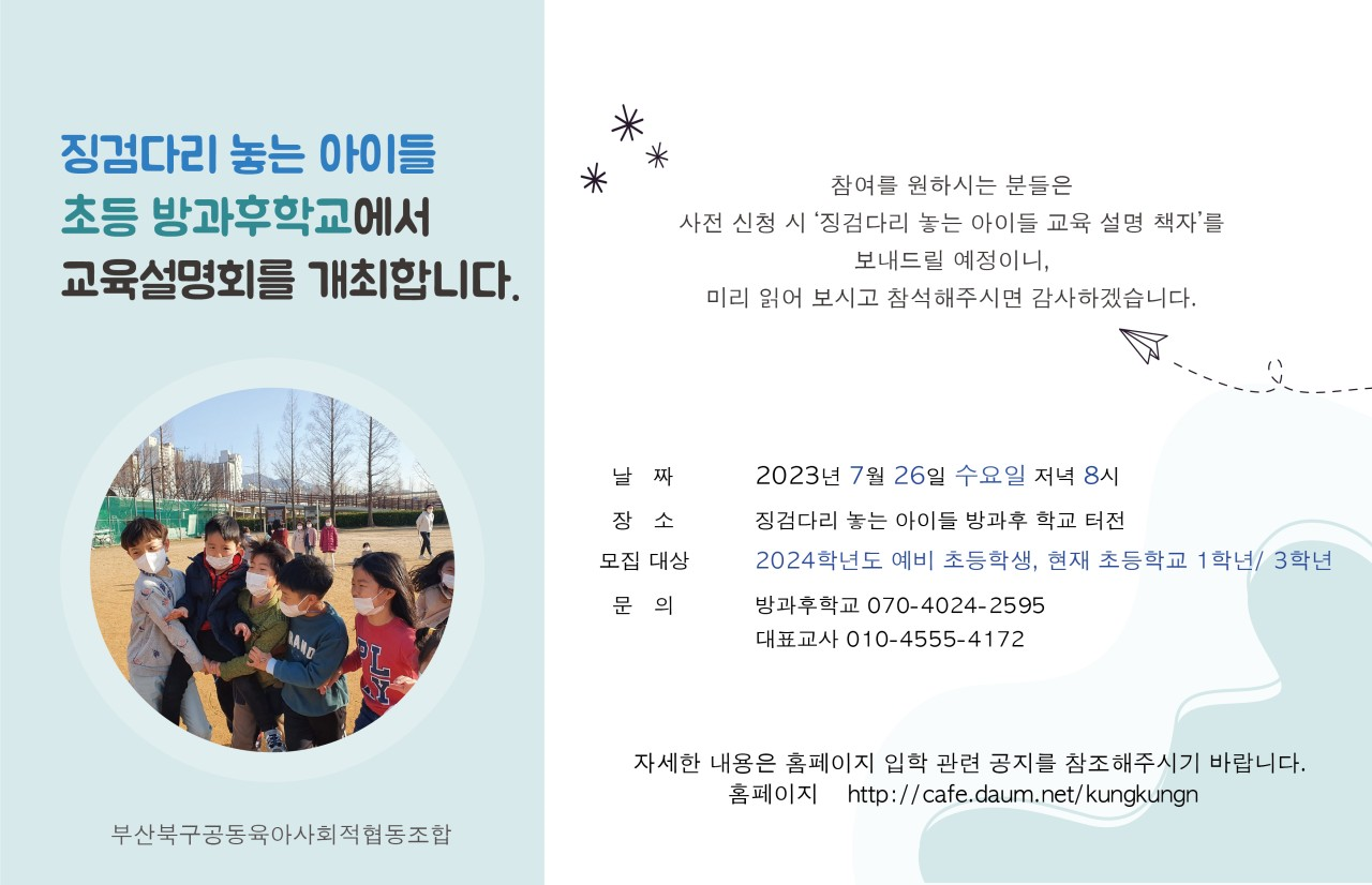 <공동육아 초등방과후 학교 안내를 위해 연1회 게시 허락받은 글입니다.>