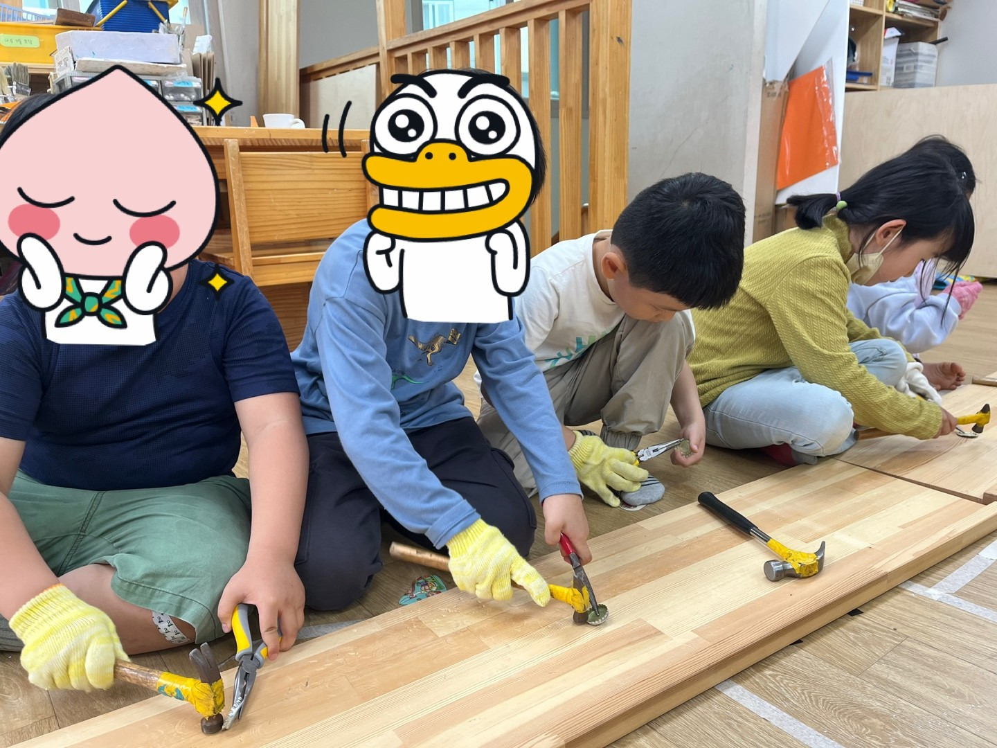 나들이, 운동, 독서, 글쓰기, 공동체 놀이, 회의와 토론, 프로젝트 학습, 리코더, 뜨개질, 목공 등 다양한 교육과정을 운영합니다. 학원에서 배우는 국어/영어/수학/예체능과는 결이 다르지만, 사람들과 관계를 맺고, 몸으로 움직이며 배우고, 스스로 생각하는 힘을 기르는 것이 징검아만의 특징적인 교육과정이라 할 수 있습니다.