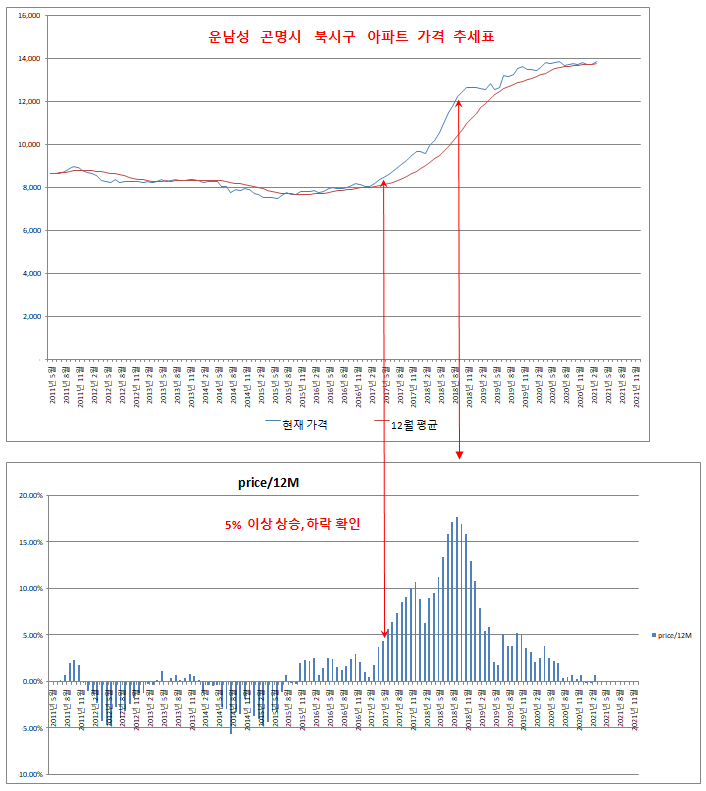 참고로 이 자료는 한인들이 많이 거주하는 곤명시 오화구 북시구 아파트 가격 차트입니다.