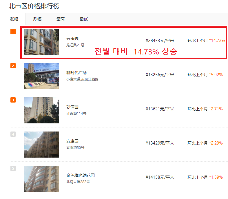 昆明市 五华区 北市区 아파트가 오르고 있는데 어디가 오르나 궁금하더군요.