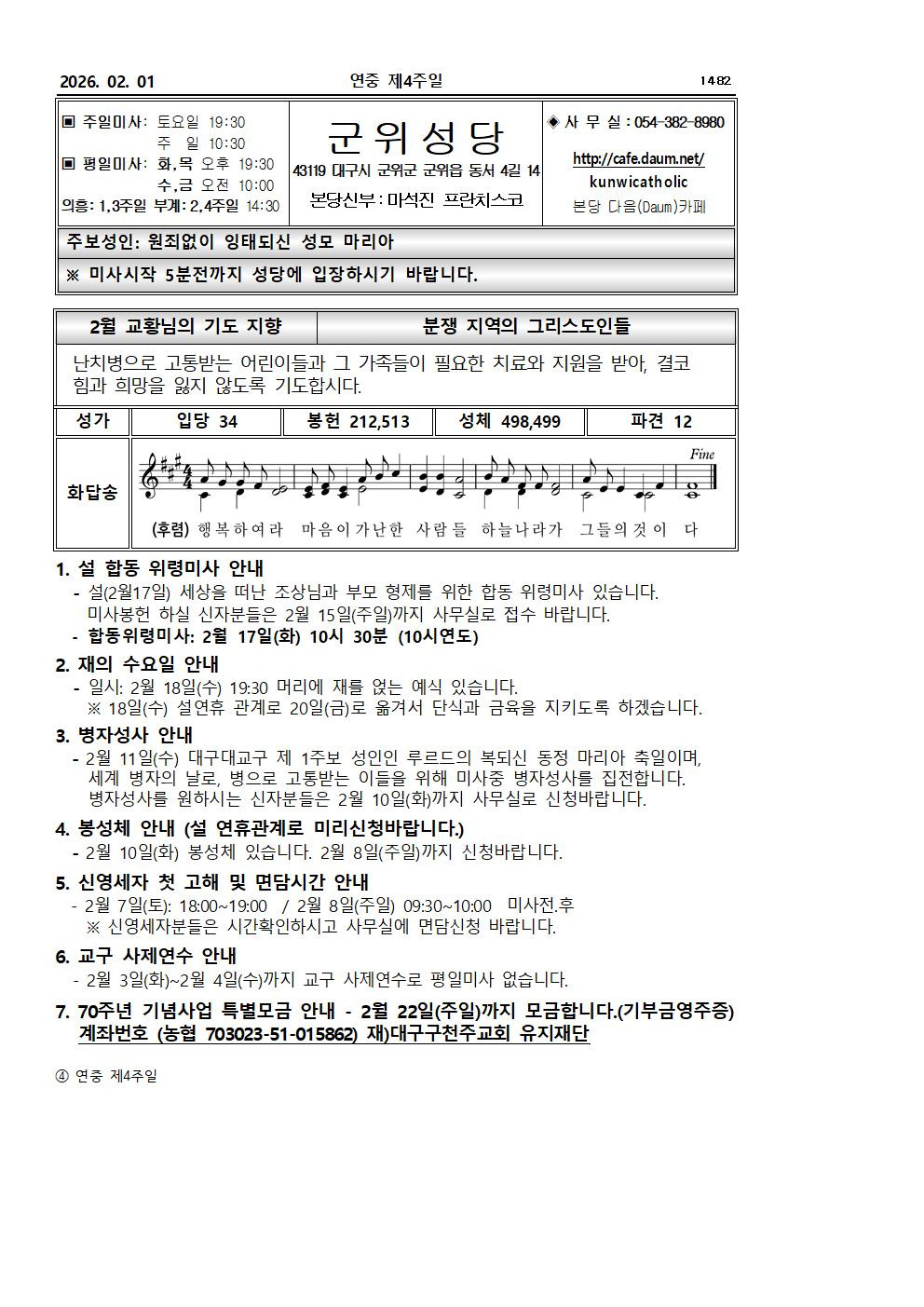 연중 제4주일_260201 작성자현영 안나|작성시간26.01.29|조회수110 목록 댓글 0 글자크기 작게가 글자크기 크게가 다음검색 현재 게시글 추가 기능 열기 북마크 공유하기 신고 센터로 신고 댓글 댓글 0 댓글쓰기 답글쓰기 댓글 리스트