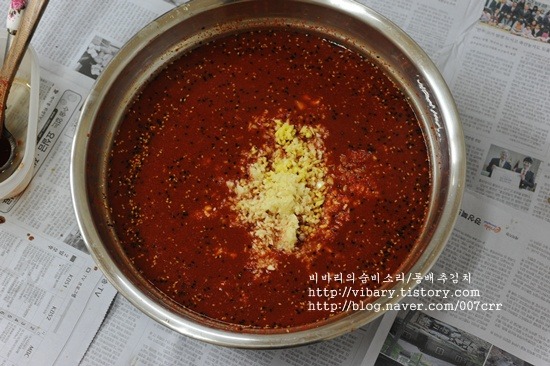 고춧가루 1근(1컵 더),다진마늘 2컵, 다진생강 1/2컵