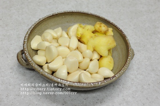 1, 마늘과 생강은 껍질을 벗겨 씻어서 커트기에 각각 따로 간다.