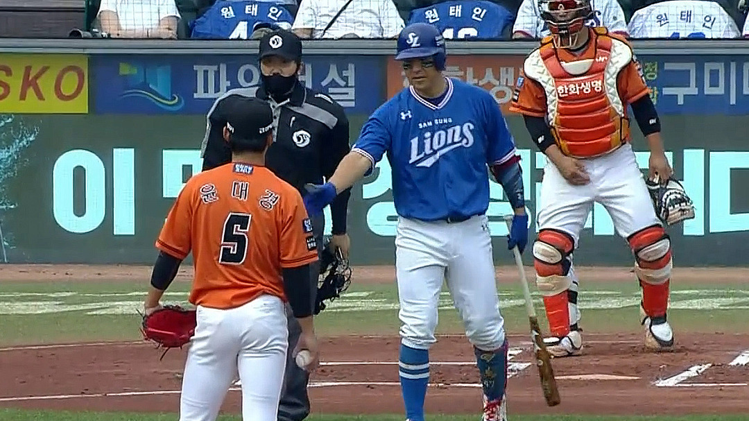 - 동영상마운드를 향해 걸어가는 강민호 / 1회초재생 수137,137