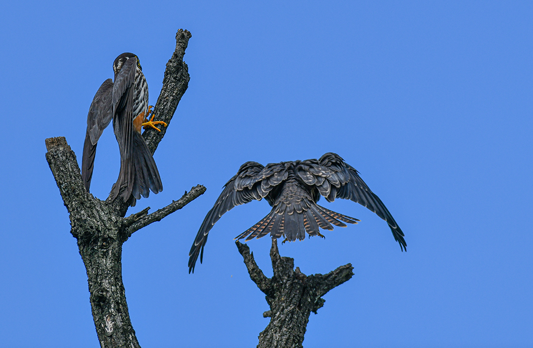 수도권의 한 야산에 새호리기가 이소를 하여 그 부근 나무에 어미와 새끼가