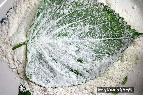 깻잎 안쪽에 부침가루를 무쳐 줍니다