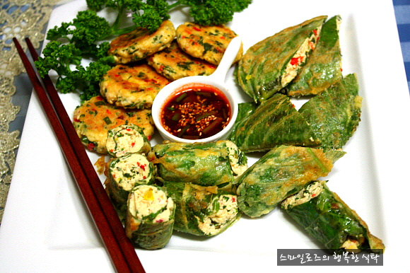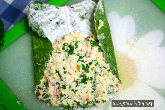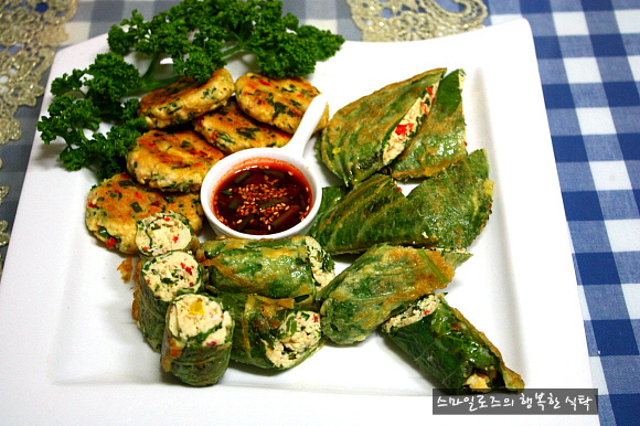 깻잎에 두부 다진것을 넣고 반으로 접어서도 만들었답니다