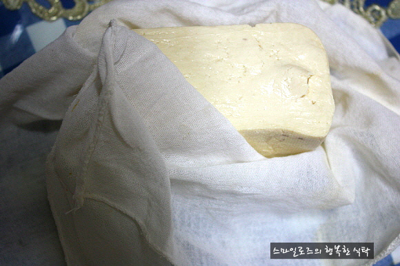 두부는 물기를 제거하기 위하여 면보자기로 꼭 짜주면