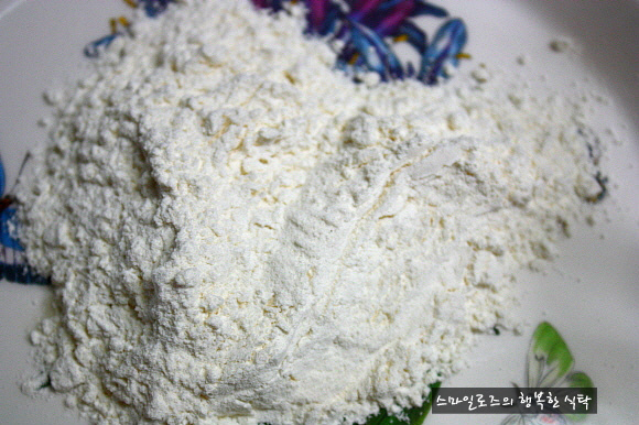 다른 접시엔 부침가루를 조금 덜어 놓고