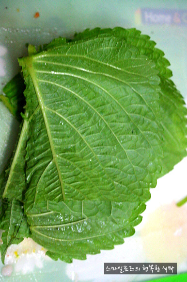반으로 접어서 부쳐준 깻잎도 사선으로 잘라 주었어요