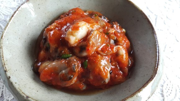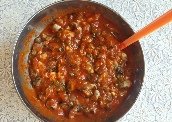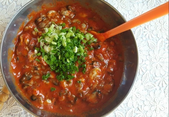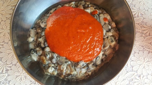 4. 물기를 뺀 굴에 양념을 넣어 살살 버무려 주기만 하면 맛있는 어리굴젓이 됨