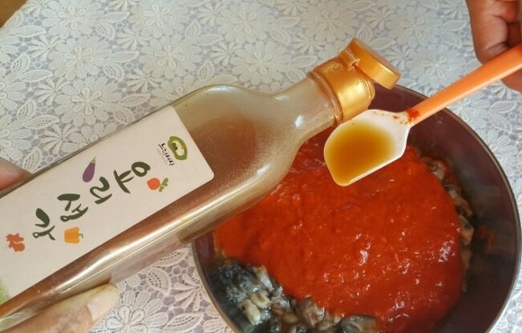 진한 생강향을 입힌 어리굴젓을 만들기 위해 생강발효액은 나중에 넣음
