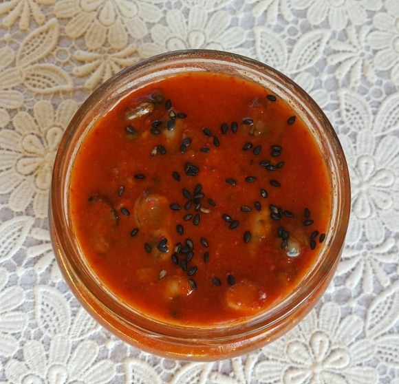 정성들여 만든 어리굴젓 유리병에 담아 두고
