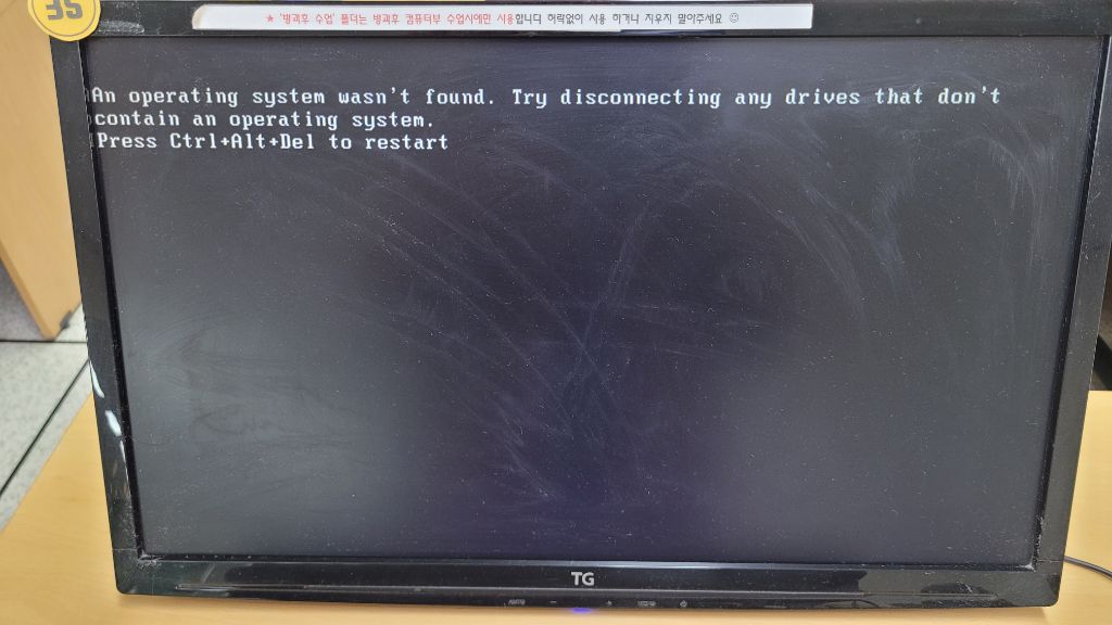 [동산초] 인터넷 연결 안 됨과 컴퓨터 부팅 안 됨 작성자이수나(동산초)|작성시간25.12.09|조회수10 목록 댓글 1 글자크기 작게가 글자크기 크게가 학생 PC12번 인터넷 연결이 안 되고(네트워크 선 뺐다 다시 꼽아도 동일 현상 반복)학생 PC35번 부팅이 안 됩니다(사진 첨부, 리스타트를 해도 동일 현상 반복) 다음검색 현재 게시글 추가 기능 열기 북마크 공유하기 신고 센터로 신고 댓글 댓글 1 댓글쓰기 답글쓰기 댓글 리스트 작성자아이즈 | 작성시간 25.12.10 12 35번점검화이트디펜더전체삭제1번 7번부팅안됨점검27번 모니터고장 원래대로교체 댓글 전체보기