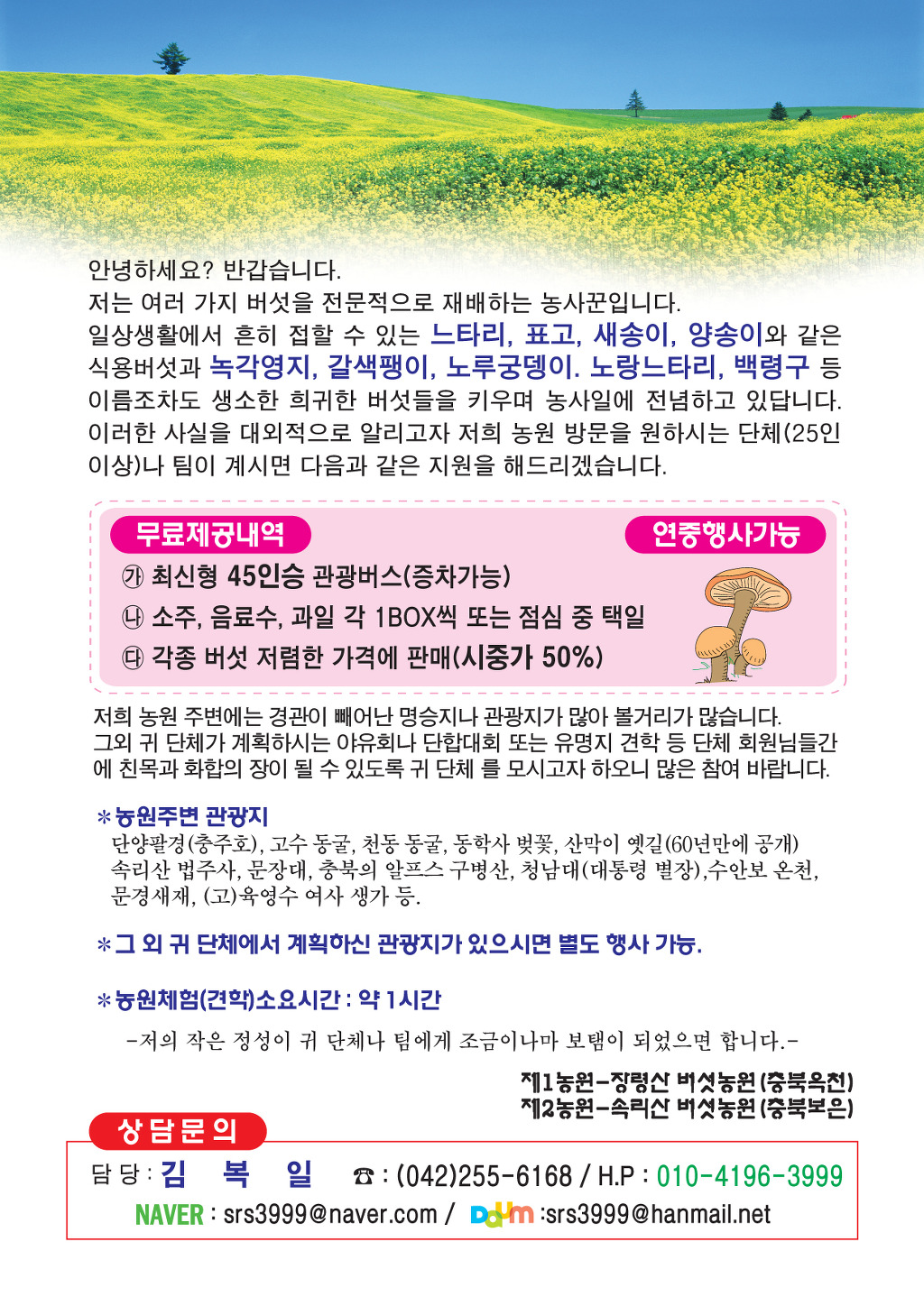 속리산 장령산 버섯농원 견학안내 작성자착한농부|작성시간12.04.16|조회수125 목록 댓글 0 글자크기 작게가 글자크기 크게가 다음검색 현재 게시글 추가 기능 열기 북마크 공유하기 신고 센터로 신고 댓글 댓글 0 댓글쓰기 답글쓰기 댓글 리스트