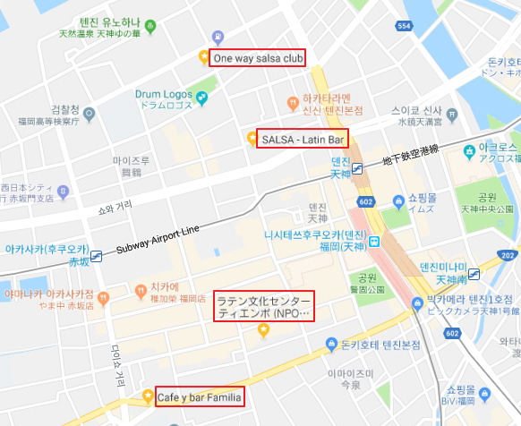 아래 보시면 후쿠오카 살사바들의 위치를 찾아볼 수 있는데
