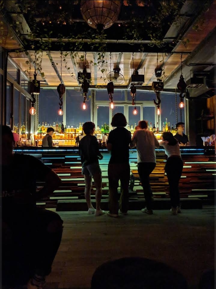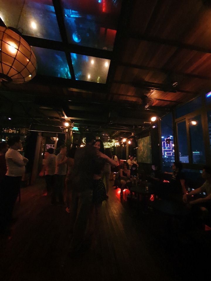 살사 2 바차타 2 키좀바2 이렇게 음악이 나오다, 11시 넘으면 바찻3 키좀바2로 바뀌었던거 같아요. 약간 클래식한 느낌의 칵테일빠인데 분위기 너무 좋음! 빌딩 꼭대기층 루프탑에 있습니다. 신기하게 살사추는 실내, 그리고 옥상 루프 2층으로 되어있어서 경치 즐기기도 좋은거 같아요.