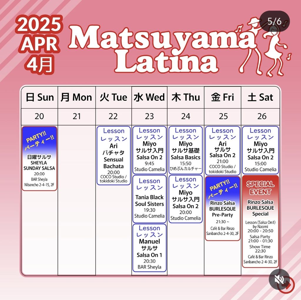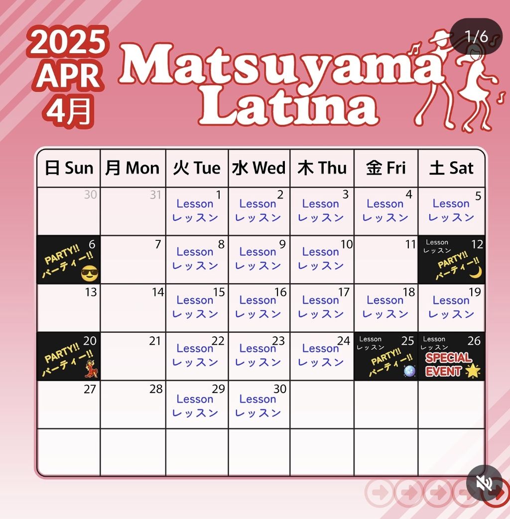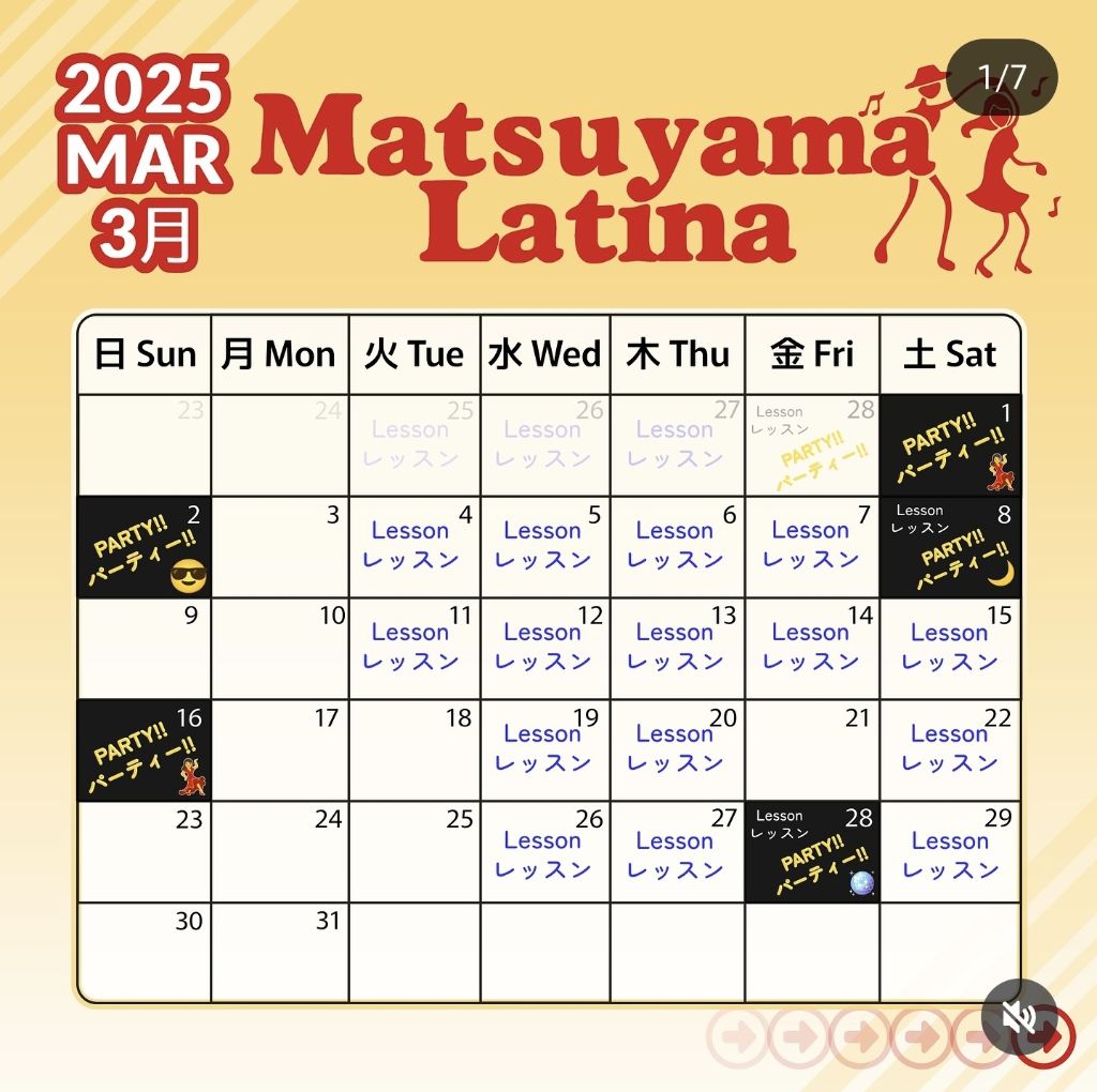 인스타에서 @matsuyamalatina 월간 달력 확인하시면 됩니다.