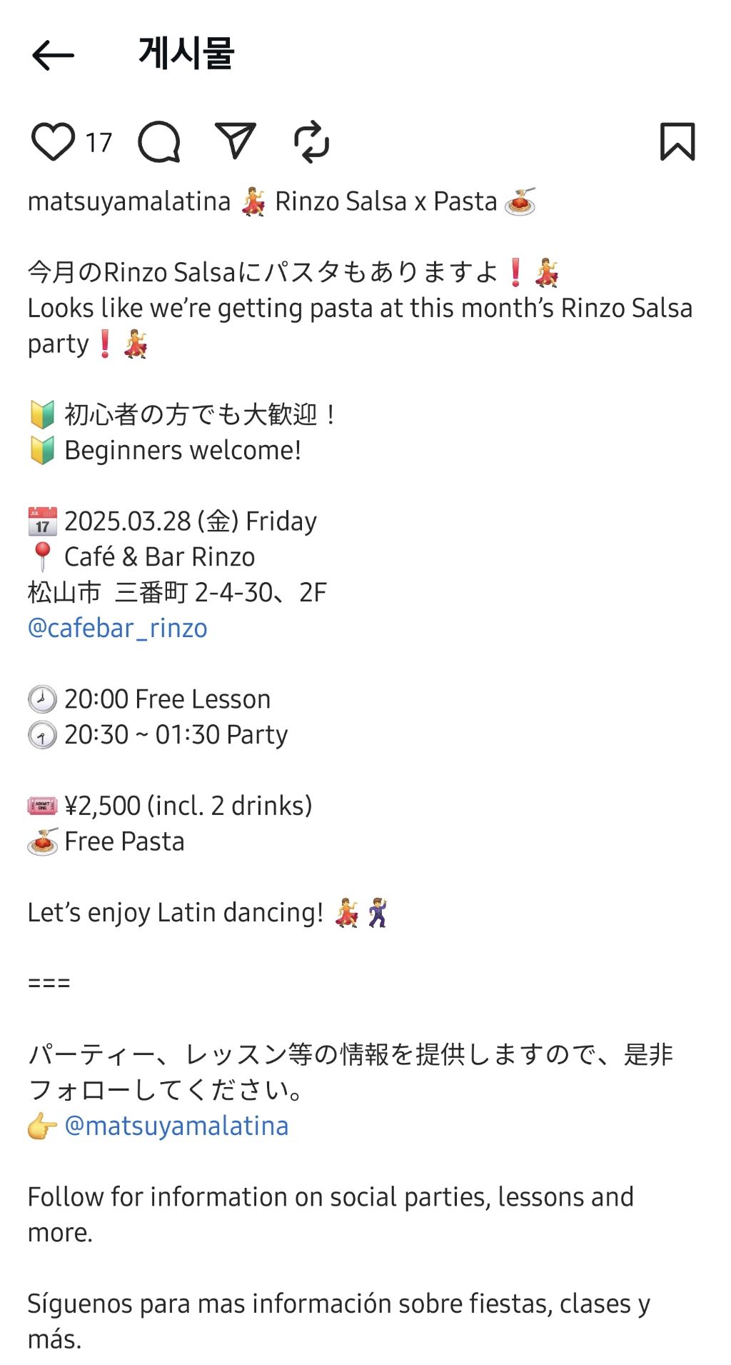 3. Rinzo Salsa×Pasta party