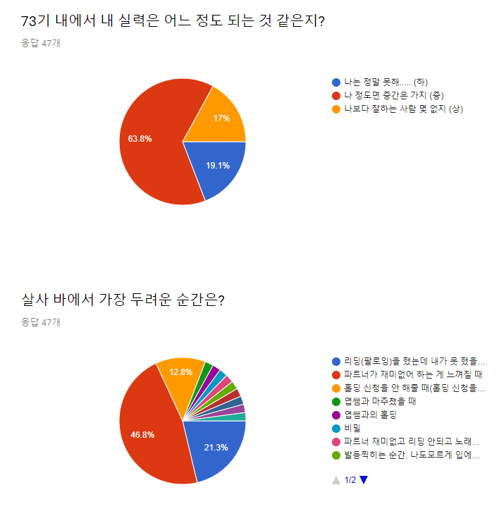 1์ ํํธ๋๊ฐ ์ฌ๋ฏธ ์์ดํ๋ ๊ฒ ๋๊ปด์ง ๋ 46.8%(22๋ช )