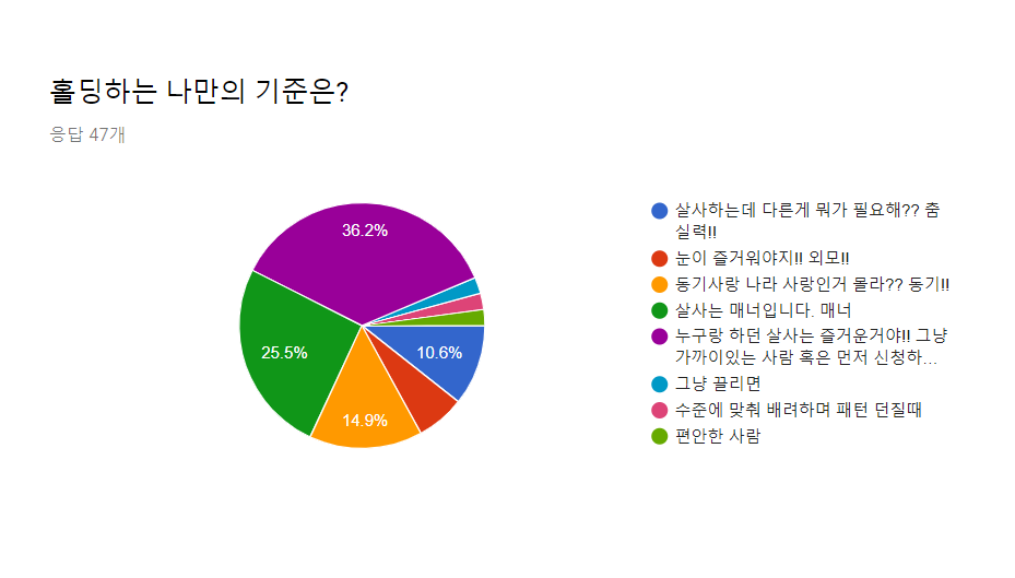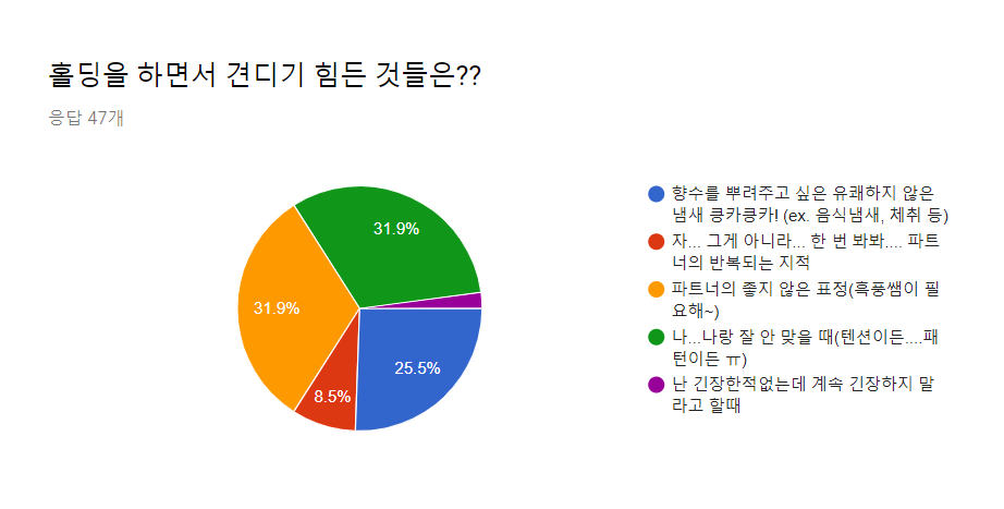 ๊ณต๋ 1์ ํํธ๋์ ์ข์ง ์์ ํ์ (ํํ์ค์ด ํ์ํด~) 31.9%(15๋ช )