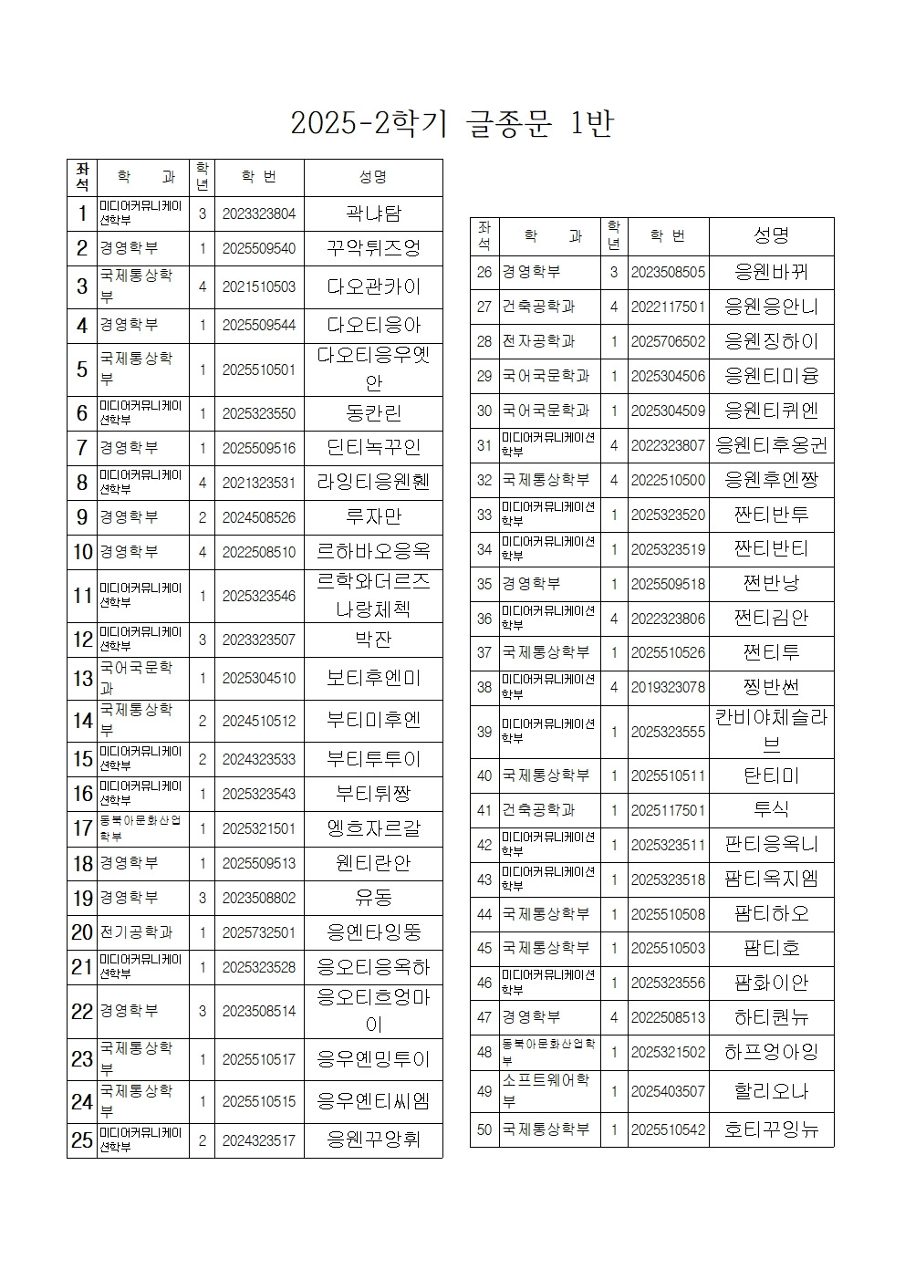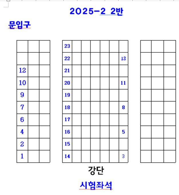 20251212) 2025-2학기 1반 2반 기말시험 명단과 시험좌석 안내