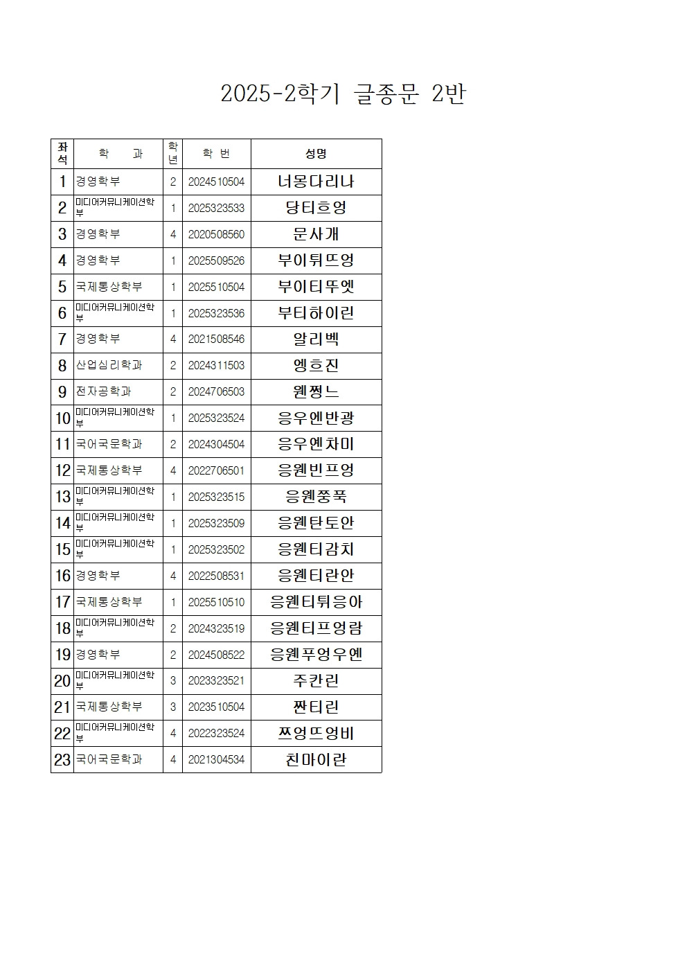 2025-2학기 2반 기말시험 명단