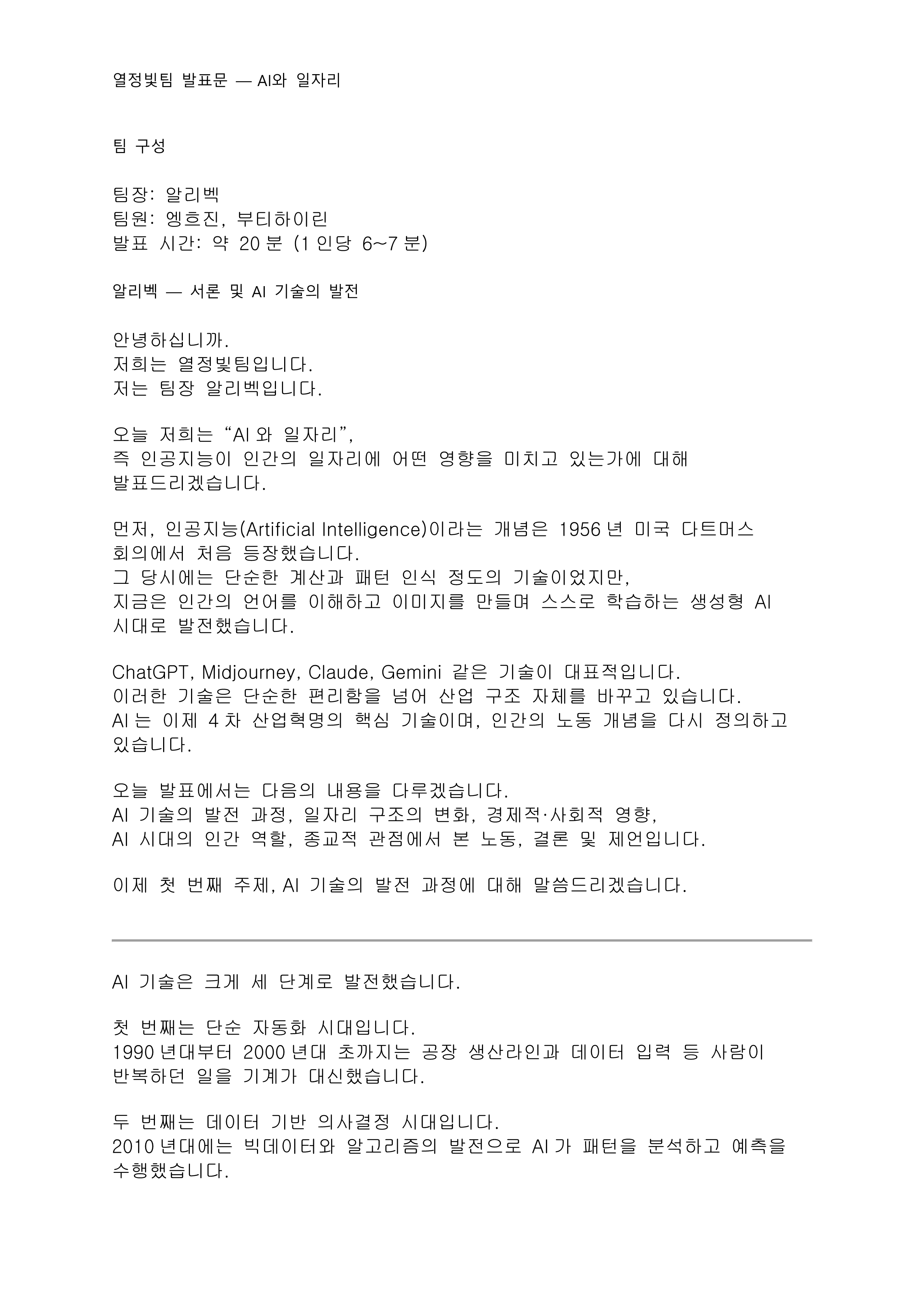 20251121) 글종문2반 3팀 열정의 빛, 'AI와 일자리'