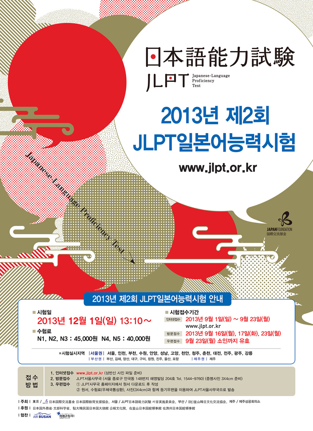 2013년 JLPT시험 안내 작성자서상범|작성시간13.08.21|조회수39 목록 댓글 0 글자크기 작게가 글자크기 크게가 첨부파일첨부된 파일이 2개 있습니다. jpg 파일 2013일본어포스터_2회.jpg 다운로드 jpg 파일 2013일본어포스터_2회.jpg 다운로드 다음검색 현재 게시글 추가 기능 열기 북마크 공유하기 신고 센터로 신고 댓글 댓글 0 댓글쓰기 답글쓰기 댓글 리스트