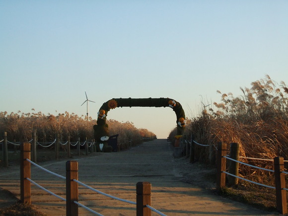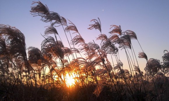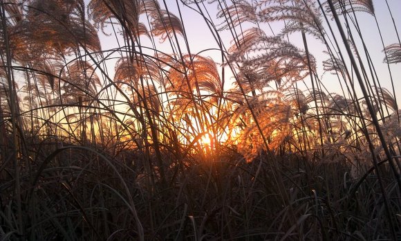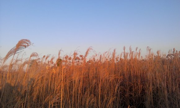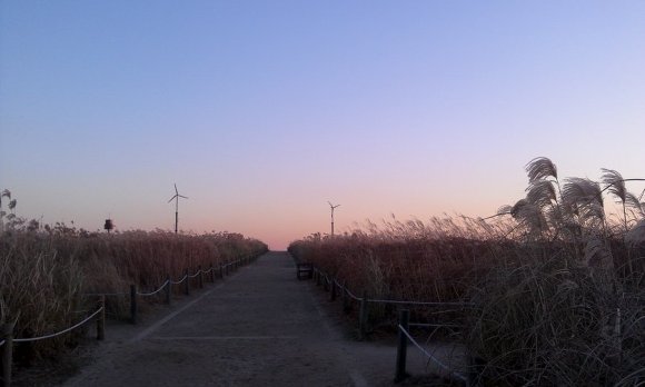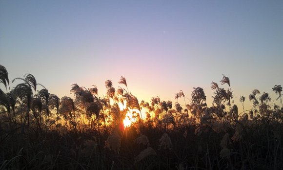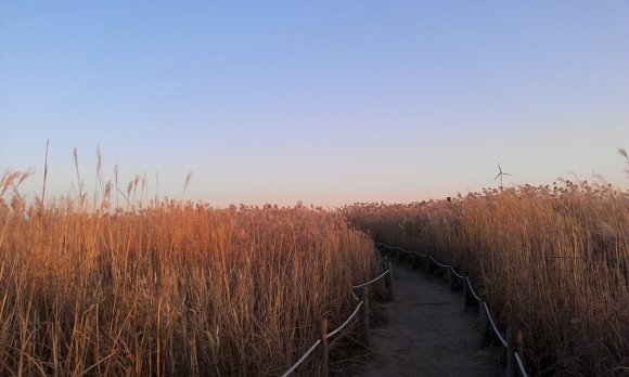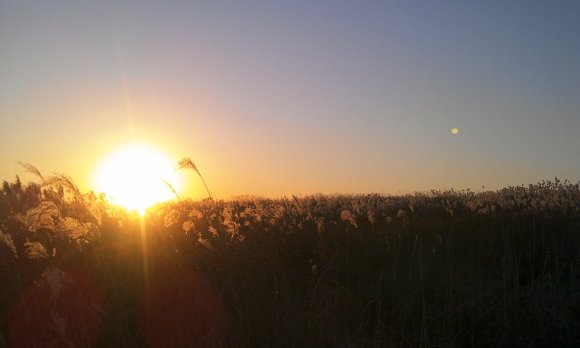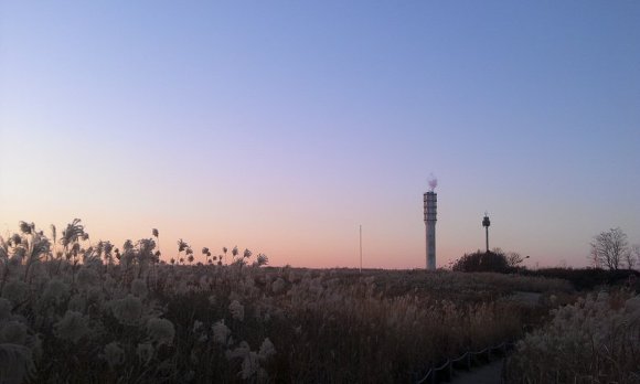 저 멀리 보이는 굴뚝 연기도 억새풀, 노을과 만나 아름다운 한 컷을 장식했습니다.