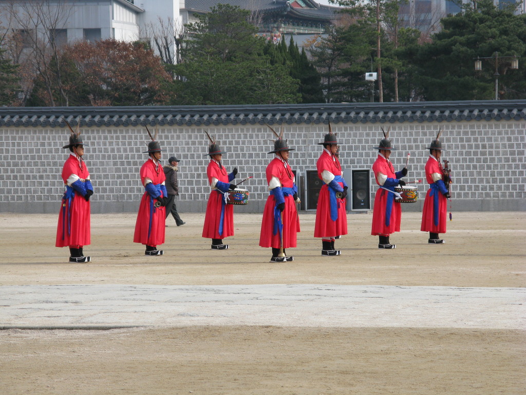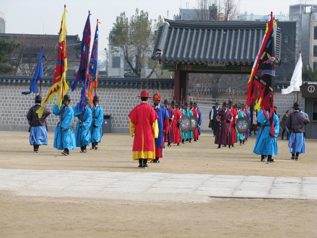 고궁박물관 앞문을 지나니 마침 위사 교대식이 치뤄지고 있었습니다. 겨우 경비병 교대하는데 쓸데없이 힘쓴다는 생각이 들긴 했지만, 위엄과 절도가 넘쳐서 보는 시간이 아깝지는 않았습니다.