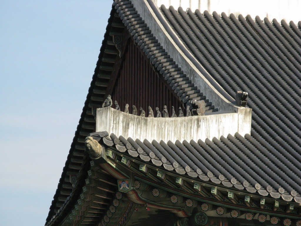 경회루와 경회루 처마의 잡상들. 경회루의 처마에 있는 잡상이 경복궁 내의 잡상 중에서 가장 많다고 하는데, 주변에 물 천지인 경회루에 왜 잡상이 가장 많았는지는 의문이 듭니다.