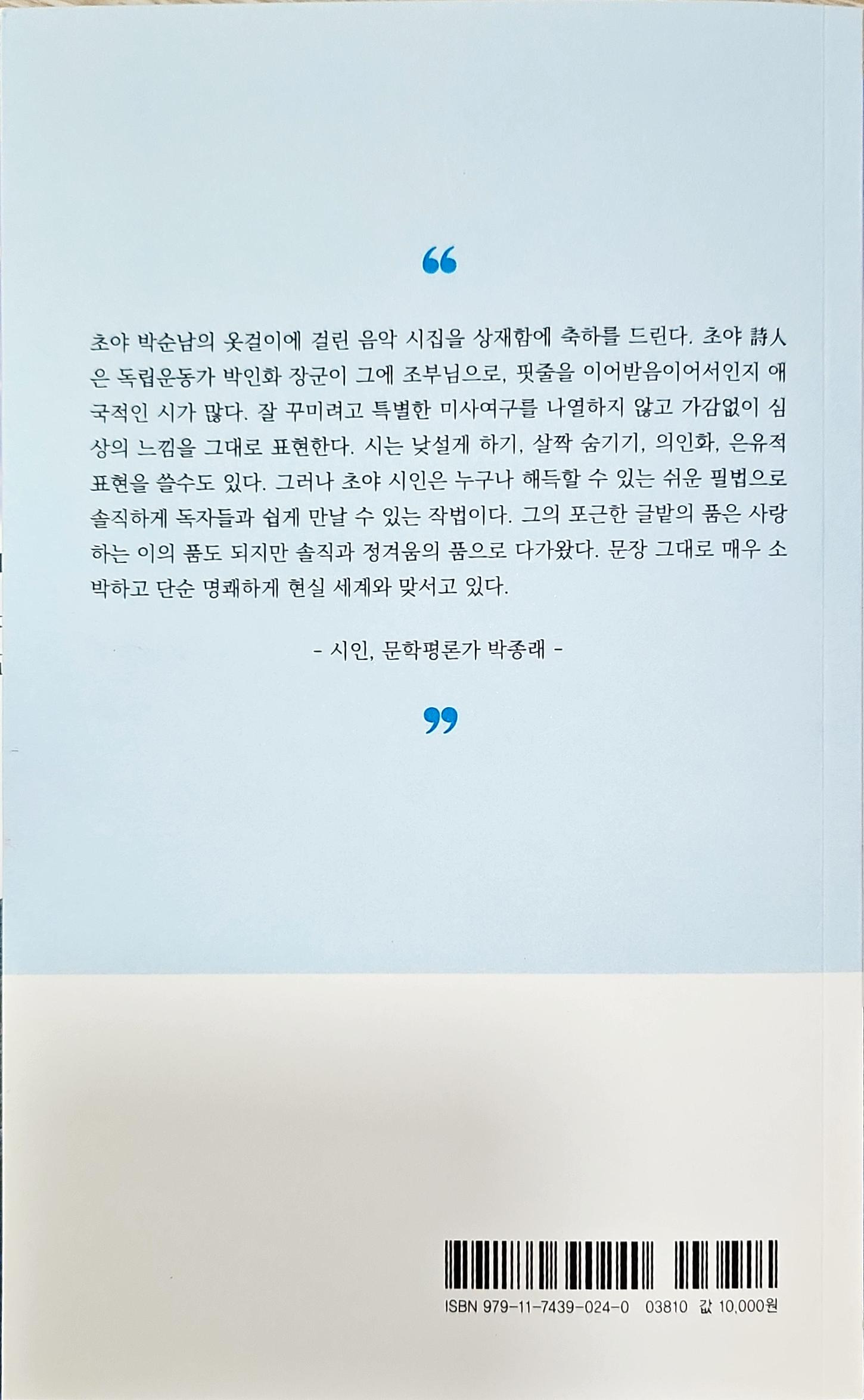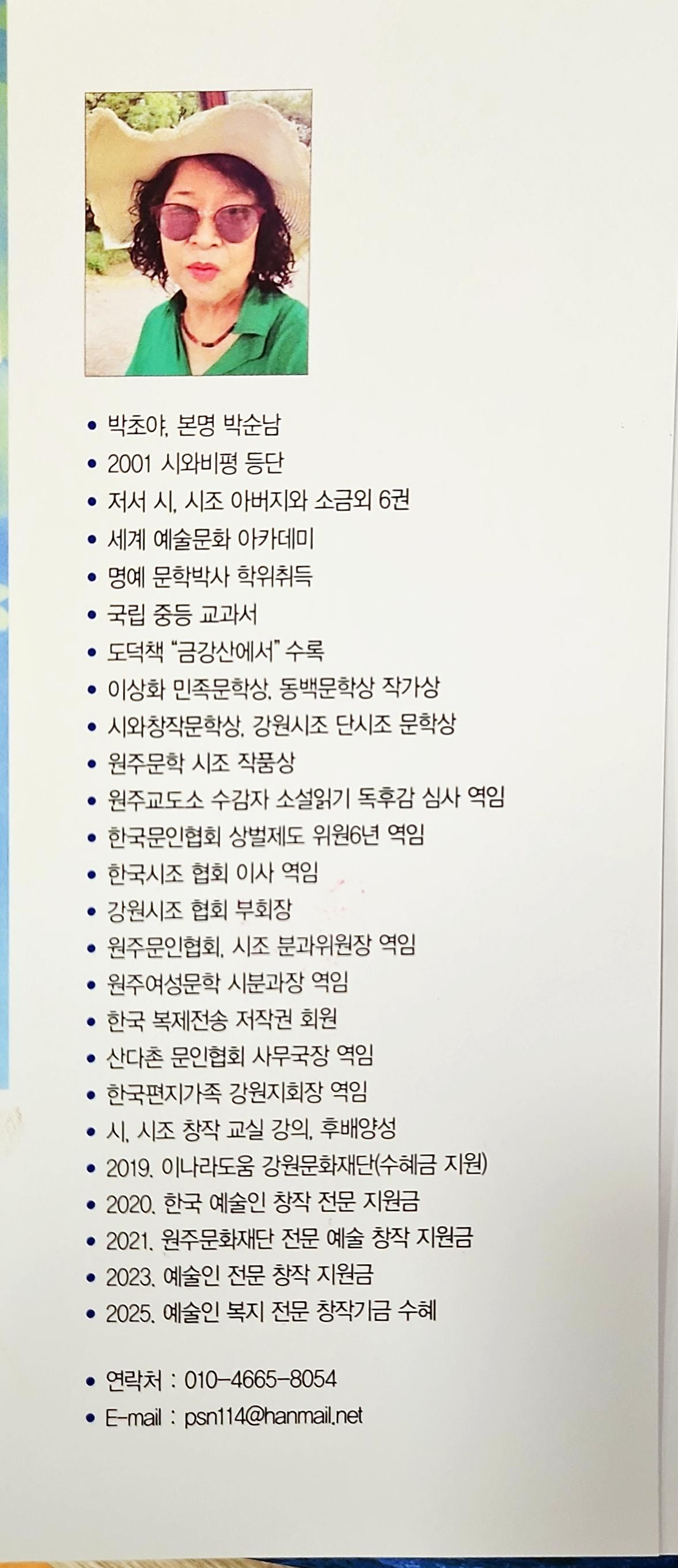 박초야 / 시집 '옷걸이에 걸린 음악' 발간 작성자강원문인협회|작성시간25.12.22|조회수24 목록 댓글 1 글자크기 작게가 글자크기 크게가 다음검색 현재 게시글 추가 기능 열기 북마크 공유하기 신고 센터로 신고 댓글 댓글 1 댓글쓰기 답글쓰기 댓글 리스트 작성자함태선. | 작성시간 25.12.22 박초아 시인님축하드립니다~^*^🌹 댓글 전체보기