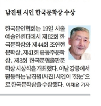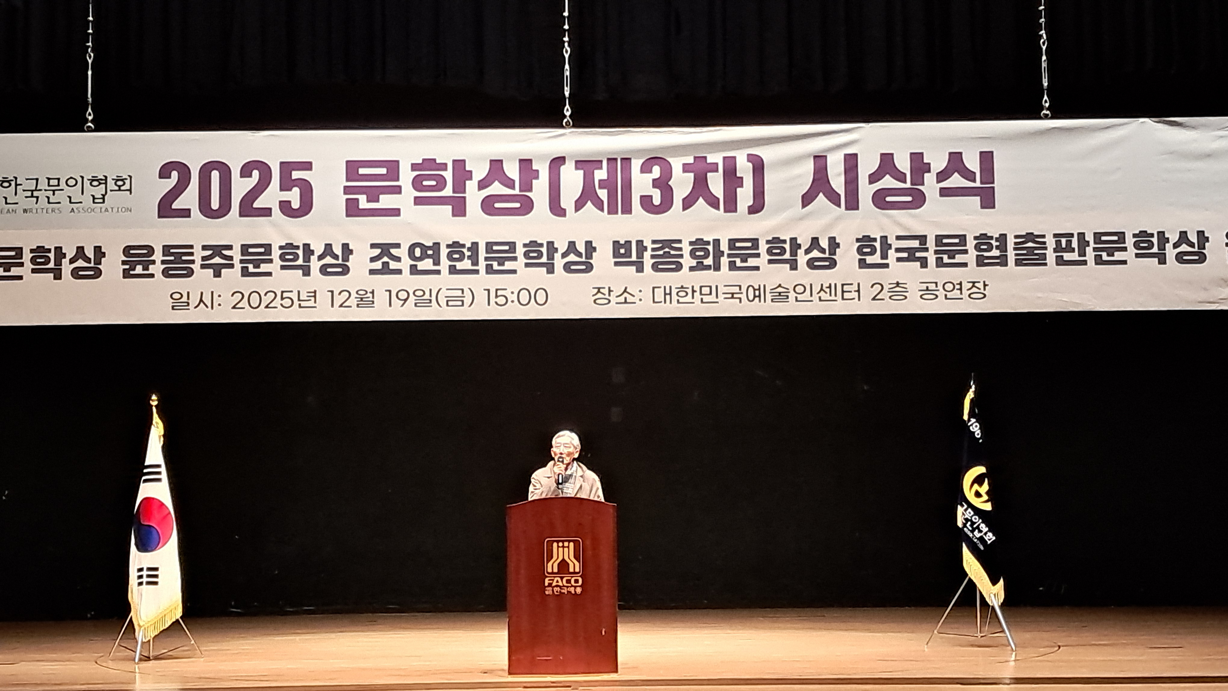 남진원 /제66회 한국문학상 수상 작성자강원문인협회|작성시간25.12.24|조회수29 목록 댓글 2 글자크기 작게가 글자크기 크게가 다음검색 현재 게시글 추가 기능 열기 북마크 공유하기 신고 센터로 신고 댓글 댓글 2 댓글쓰기 답글쓰기 댓글 리스트 작성자오로라 배정순 | 작성시간 25.12.24 한국문학상 수사을 축하드립니다.😁😁😁 작성자함태선. | 작성시간 07:05 new 남진원 회장님 한국문학상 수상을 축하드립니다새해 복 많이 받으세요~^*^🌹 댓글 전체보기