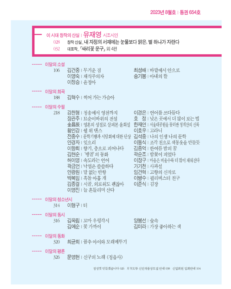 월간문학 654호 신작발표