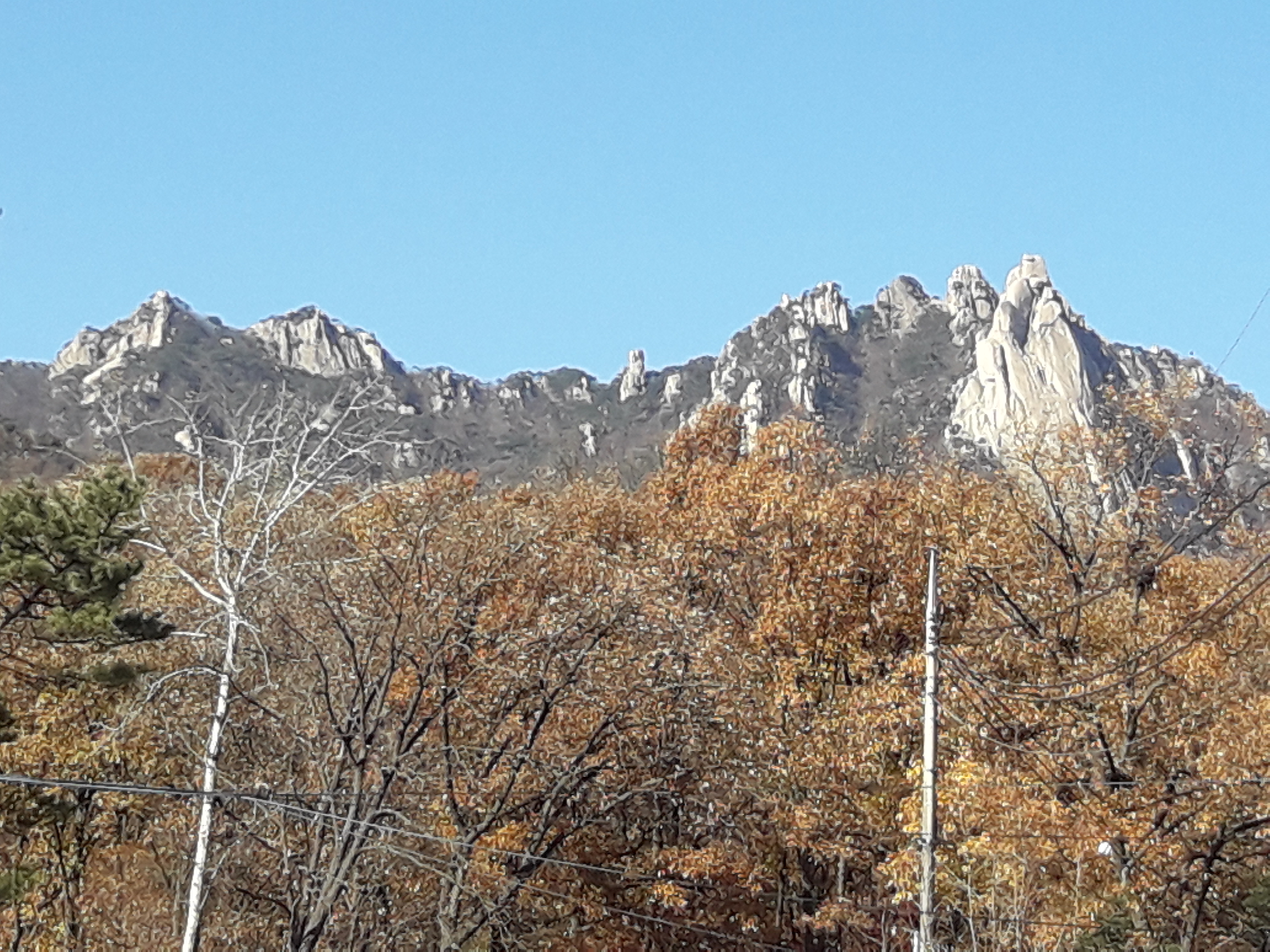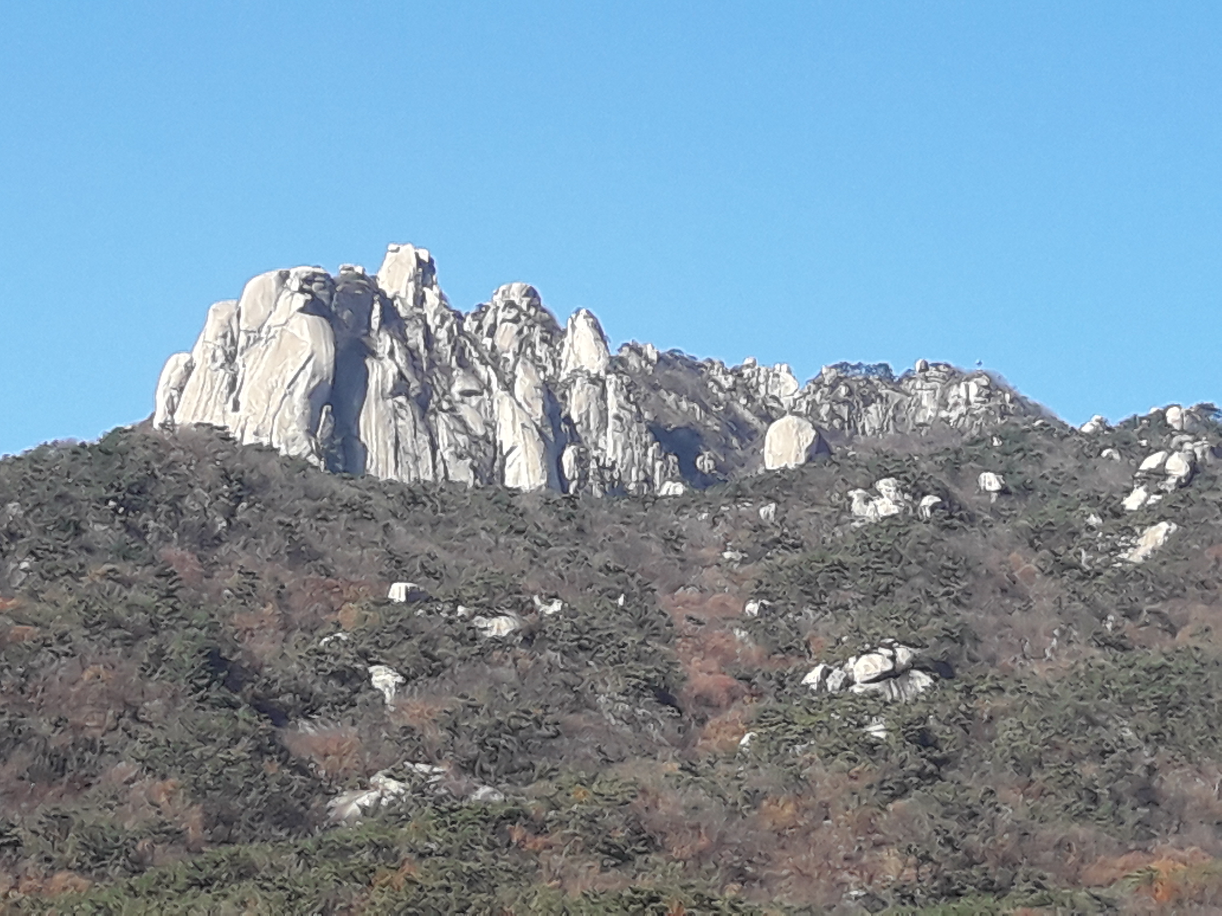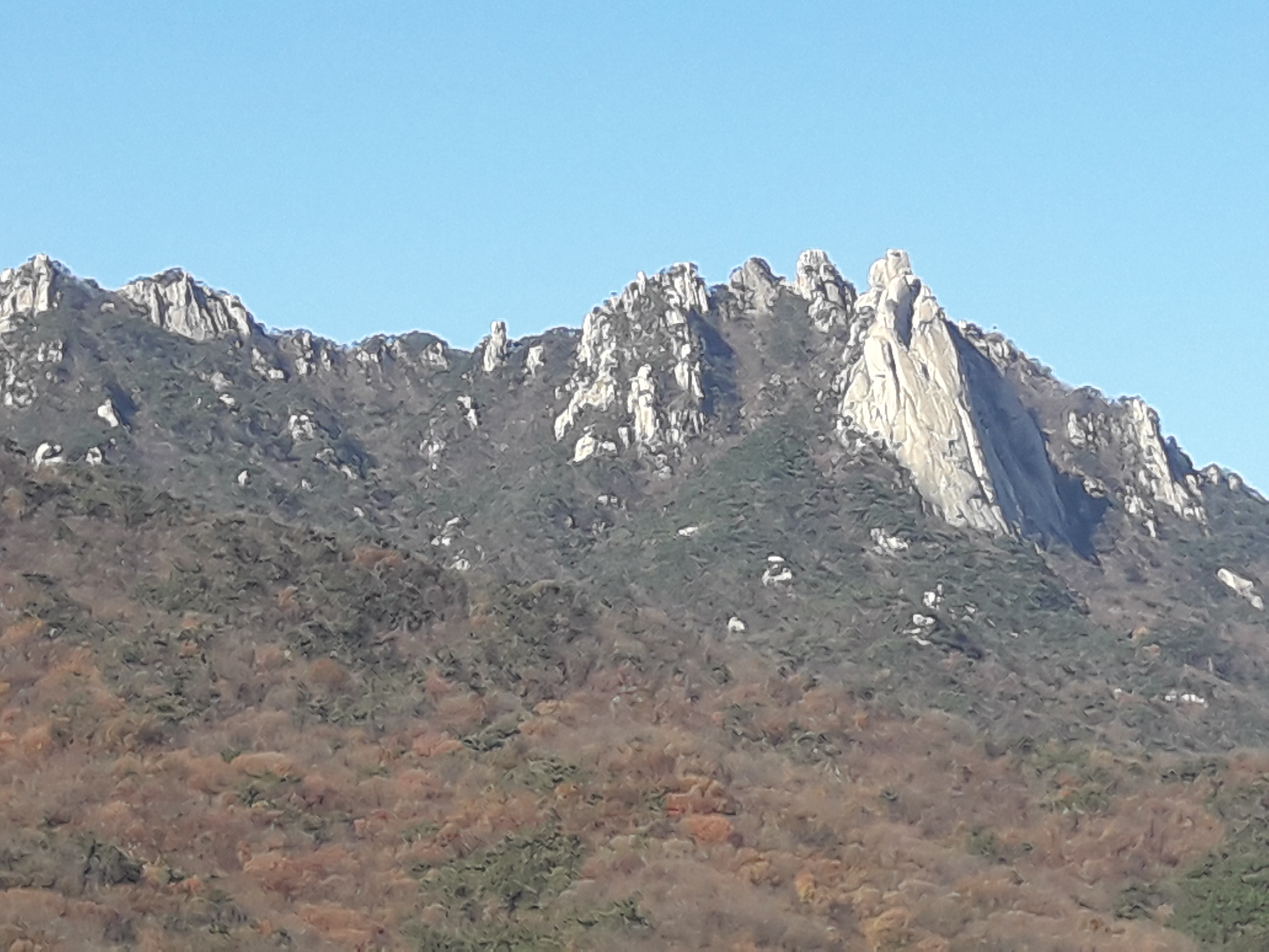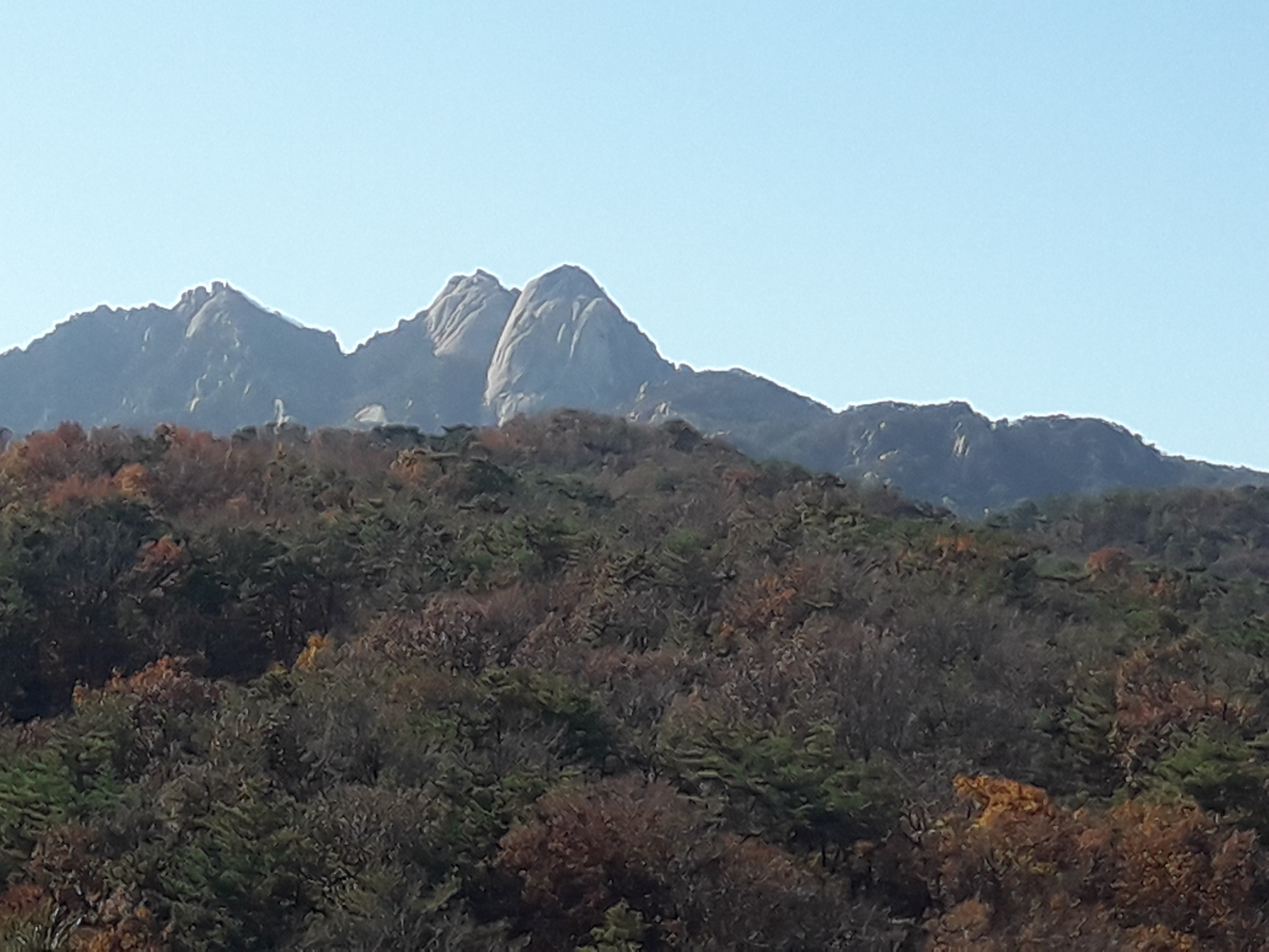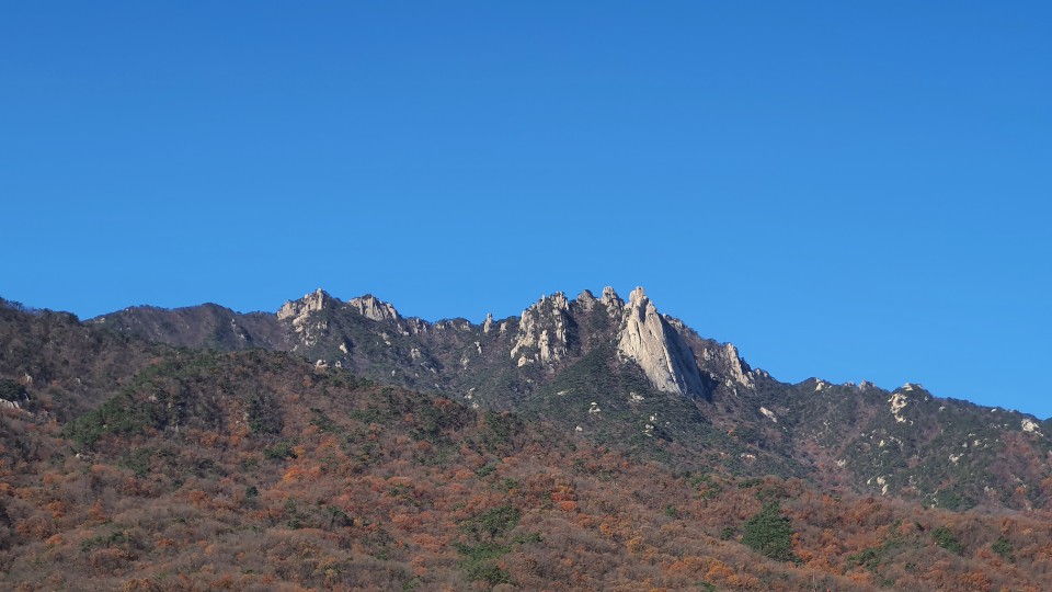 - 산자락 길에서 보이는 포대능선과 선인봉, 만장봉, 자운봉, 주봉,,, 그리고 짙은 청색