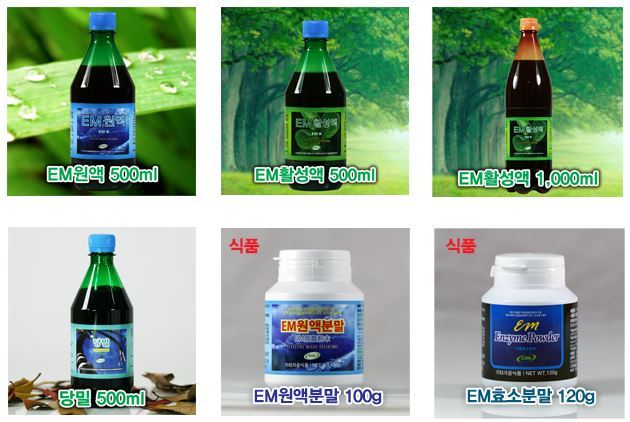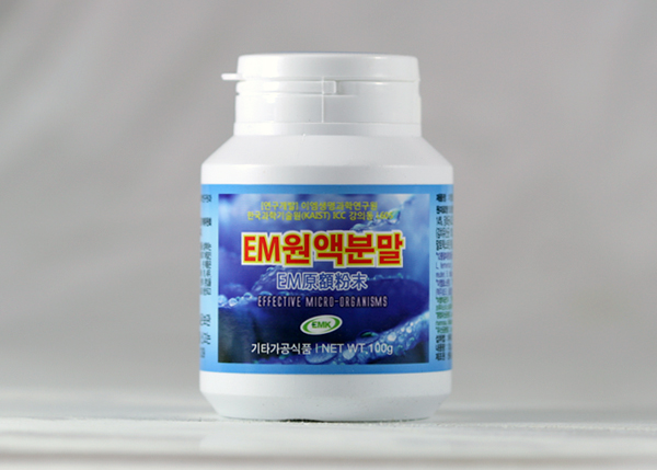 EM은 유용한 미생물(Effective Microorganisms)의 약자로, 일본 오키나와류큐대학 히가 데루오 교수가 비료로 이용하는 EM미생물들을 처음 발견했다. 하지만 한국에서는 순수 대한민국의 기술로 이엠생명과학연구원에서 EM원액 기술을 개발했고 일본 보다 앞선 EM원액분말을 개발하는데 성공했다.