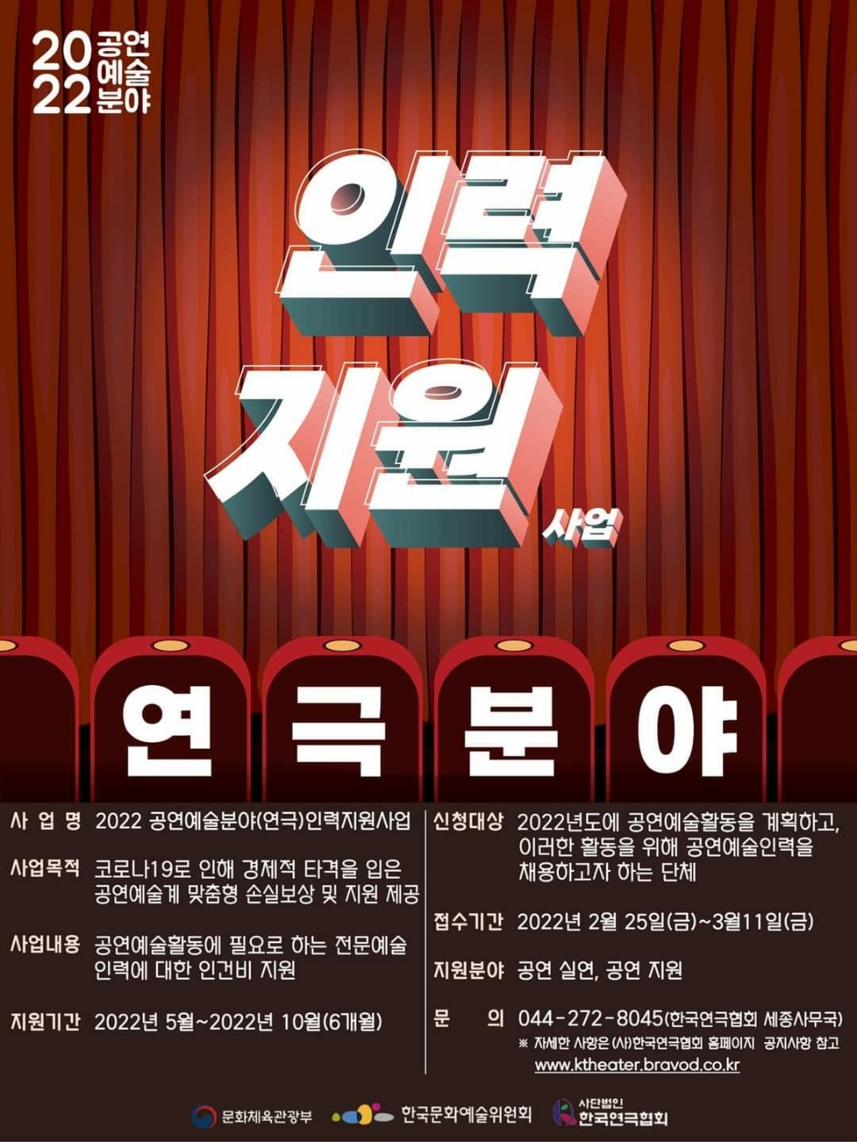 2022 인력지원 사업 - 연극분야 작성자rh9253|작성시간22.02.22|조회수176 목록 댓글 0 글자크기 작게가 글자크기 크게가 다음검색 현재 게시글 추가 기능 열기 북마크 공유하기 신고 센터로 신고 댓글 댓글 0 댓글쓰기 답글쓰기 댓글 리스트